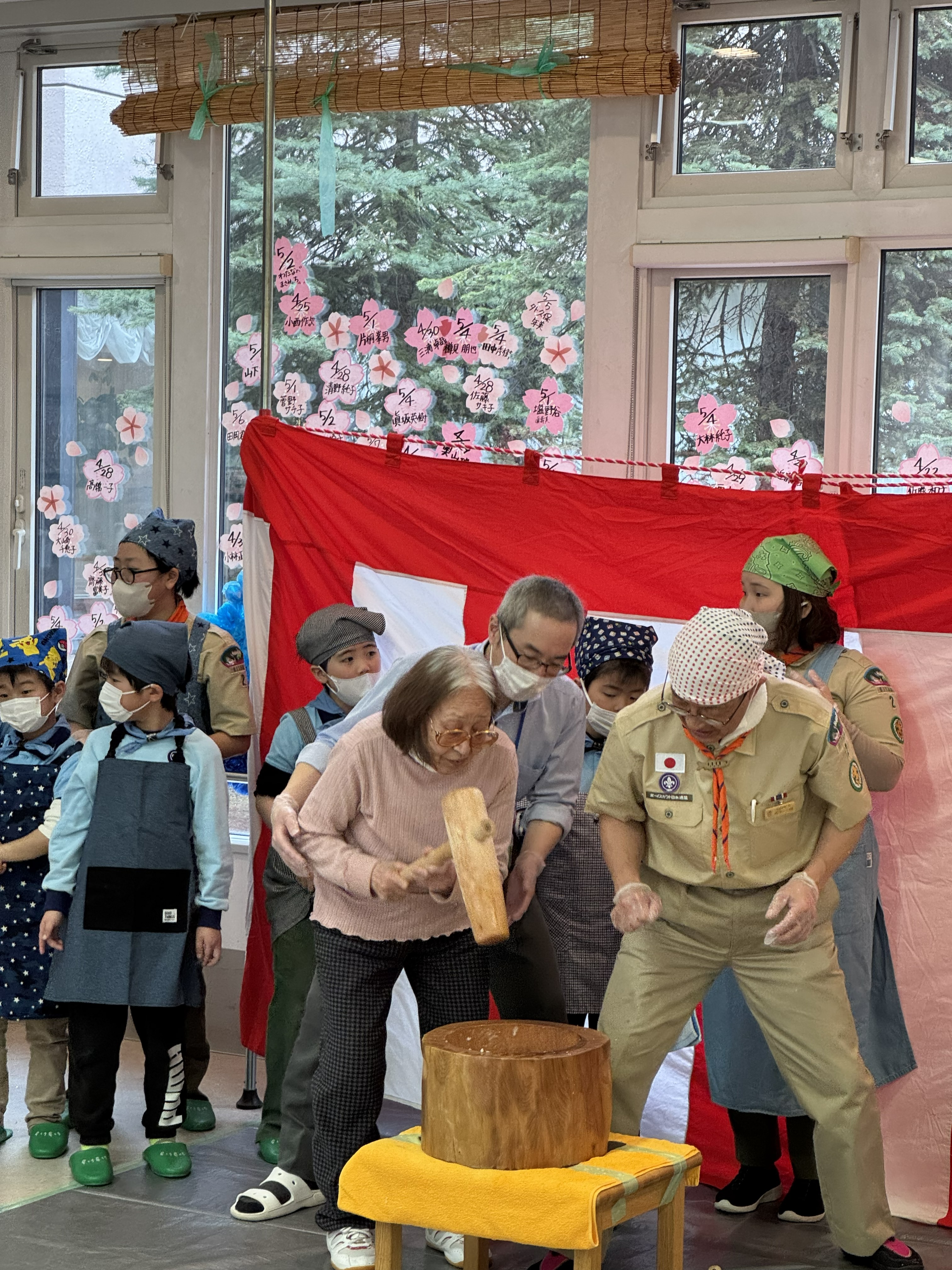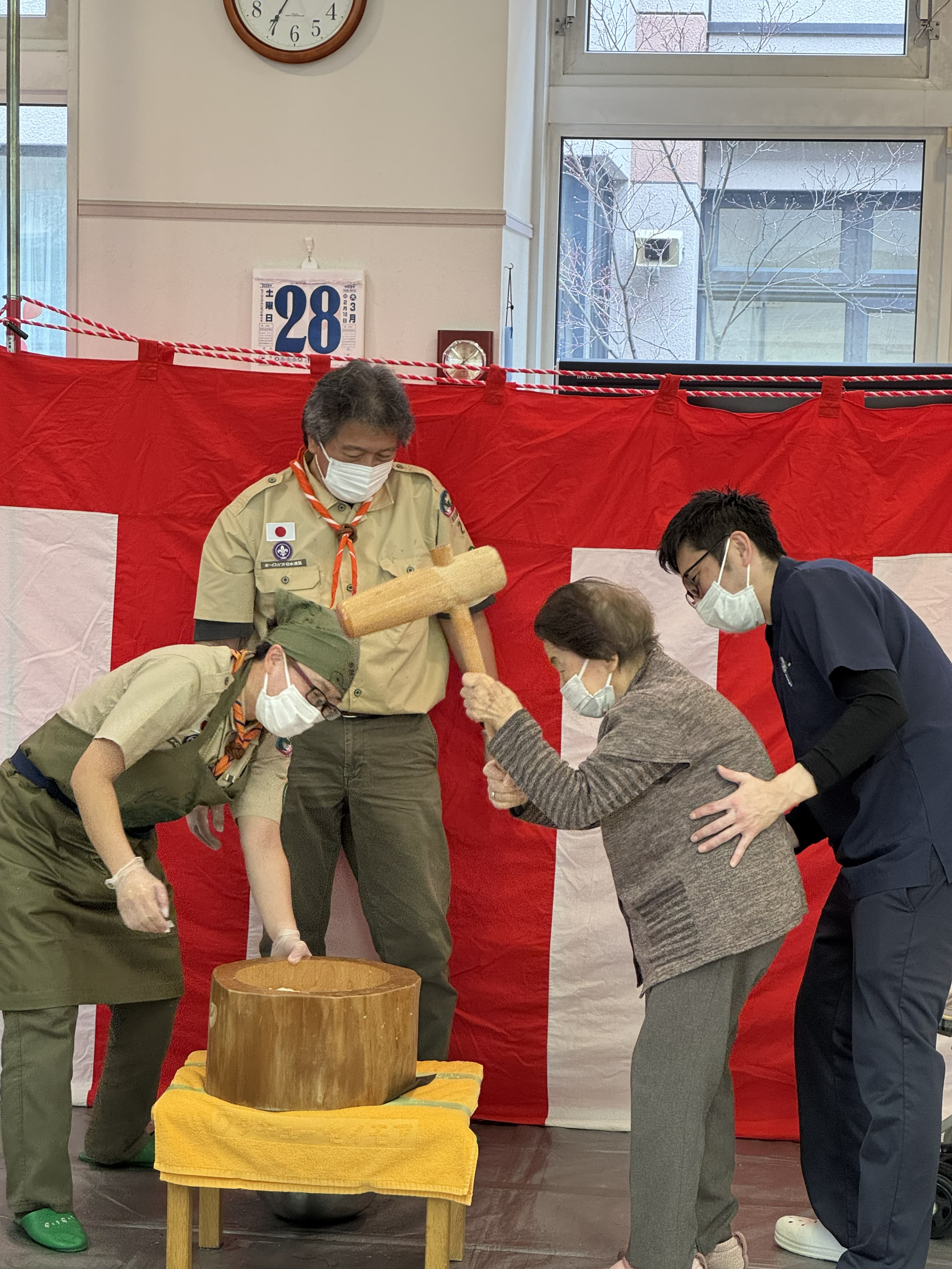餅つき大会では、ボーイスカウト留辺蘂第2団と北見第2団、北見信金若葉支店の皆様がボランティアで参加され、季節の行事に一役買って頂きました。