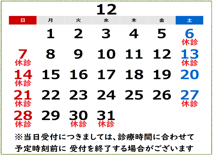 ※近日中に当院よりご連絡・ご説明をさせて頂きますので、日数に余裕をもって頂きたくお願いします。