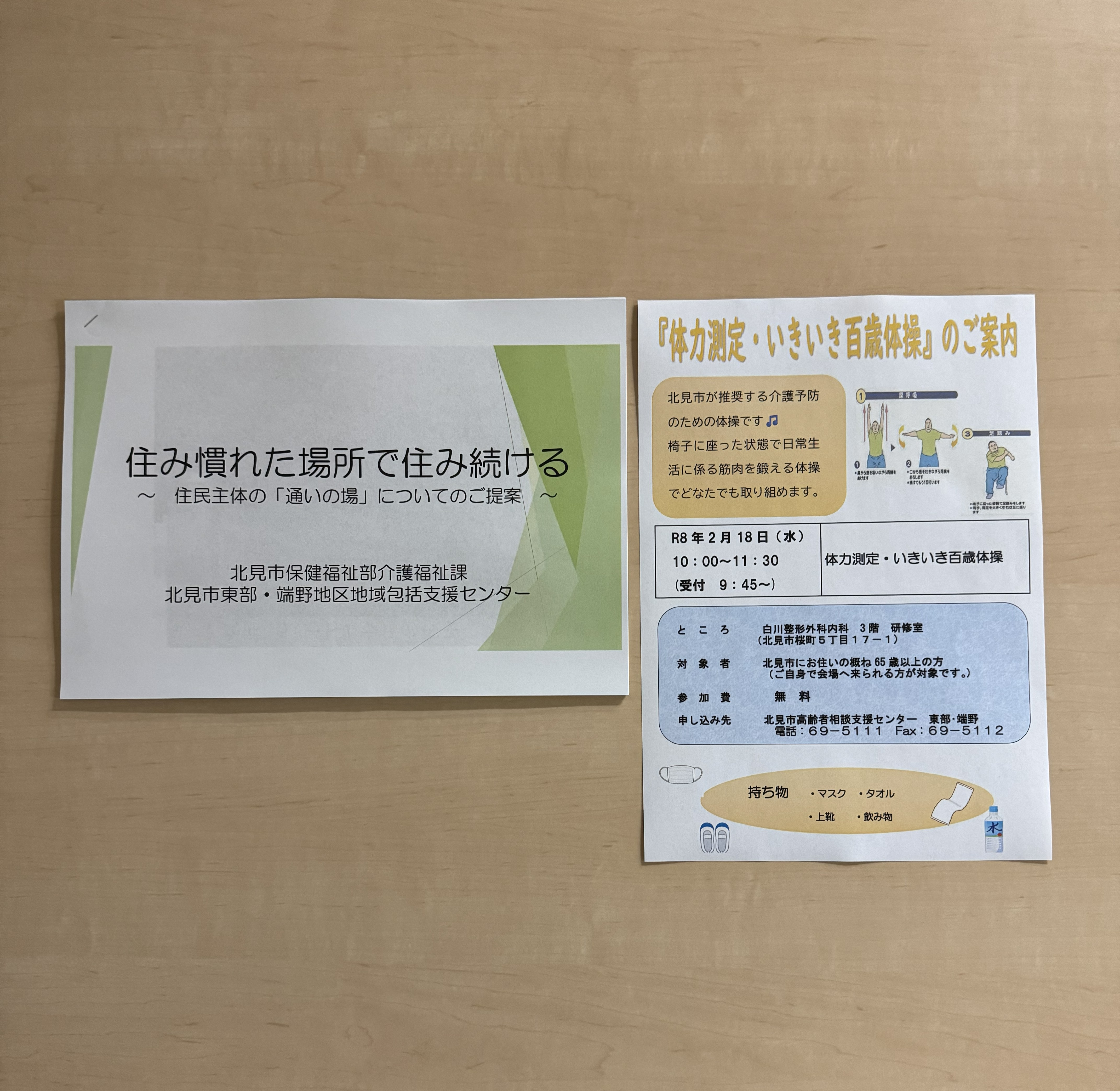 「いきいき百歳体操体験会」を白川整形外科内科で開催いたしました。近隣住民の方々12名が参加されました。