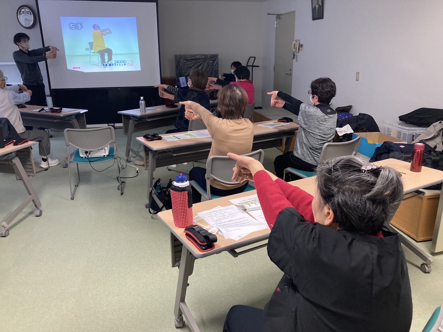 真剣に行うと結構大変な百歳体操を体験し、会場は熱気ムンムンとなりました。2月18日からの本運用も今回ご参加の12名全員が継続を希望されました。地域の通いの場でありゆるやかな互助の場に成就することを期待しております。