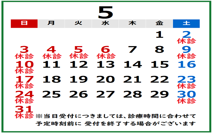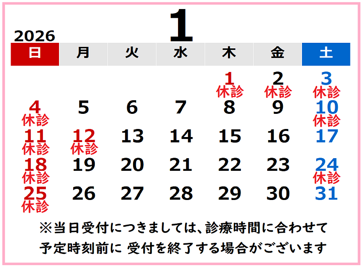 ※近日中に当院よりご連絡・ご説明をさせて頂きますので、日数に余裕をもって頂きたくお願いします。